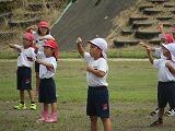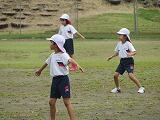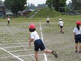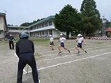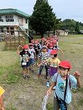 朝、降っていた雨があがり、1・2年生が運動場に出てきました。