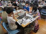 6年生が図画工作の時間に、墨を使って作品づくりをしました。墨をにじませたり、ぼかしたり等する技法を用いながら、独自の作品を仕上げていました。