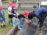 都城警察署の方においでいただき、不審者を想定した避難訓練をしました。警察の方から、「子ども達が、先生の指示をしっかり聞き、機敏な行動で避難できていますね」と、おほめの言葉をいただきました。「いか・の・お・す・し」「は・ち・み・つ・じま・ん」・・・不審者に気を付けるための言葉です。分かりますか?