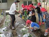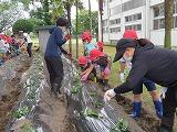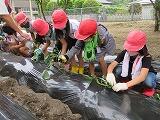 6月2日(水) 1・2年生が生活科で芋の苗植えをしました。子ども達が植えている芋の苗は、地域の方がJAを通して学校にくださったものです。ありがとうございました。