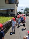 地震を想定した避難訓練をしました。新型コロナウイルス感染症や熱中症の予防にも気をつけながらの避難訓練でした。子ども達の静かで機敏な行動が素晴らしかったです。