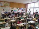 5名の交通安全協会の方においでいただき、交通安全教室を行いました。1・2年生は、道路の安全な歩き方や横断歩道のわたり方を、3~6年生は、自転車の安全な乗り方を学びました。