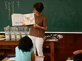 1年生は、しぼんだアサガオの花を集め、図工の時間に色水をつくって活動します。