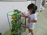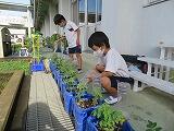 一方、2年生は、ミニトマトの種をまいたばかりです。芽が出るのを楽しみにしながら、下校前にお世話をしていました。
