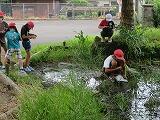 4年生が総合的な学習の時間に、ビオトープで動植物を観察しました。予定では、南九州大学の先生と学生さんが来られ、一緒に活動することになっていたのですが、新型コロナウイルス感染症の感染状況が厳しいため、4年生だけでの活動になりました。