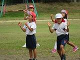 運動場でダンスをするのは、今日が初めてです。自分は、どの場所で踊ればよいのか、ちょっと戸惑っているようですよ。