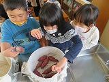 1・2年生が、お芋の収穫祭をしました。蒸したての芋は、ホクホクして美味しいですね。