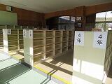 ① 「入口」の表示側から入り、お子さんの学年の靴箱前にあがります。