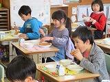 今日は防災給食でした。献立に「救給カレー」(非常食)が入っており、子ども達はスプーンですくって食べていました。皆さんの家では、災害に備えて非常食が準備されていますか?