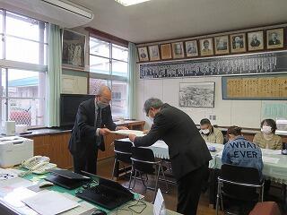 校長室で表彰式を行いました。おめでとうございます(*^o^*)