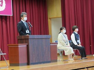 写真は、新任式の様子です。本年度は、3名の先生をお迎えしました。よろしくお願いします。