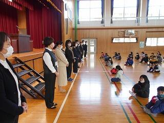 転出・退職する先生とのお別れの式をしました。二人の先生のあいさつを、じっと聞き入る子ども達・・・保護者・地域の皆様、お世話になりました。ありがとうございました。