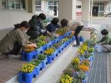 学校玄関にペチュニアをはじめ、色とりどりの花が置かれています。明後日、卒業式会場を飾る花です。子ども達が育てた一人一鉢の花も、6年生の卒業を祝います。
