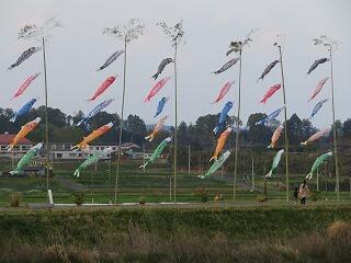 庄内川沿いに、たくさんの「こいのぼり」が泳いでいます。散歩がてら、こいのぼりを見に来られる方がいらっしゃるようです。