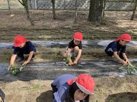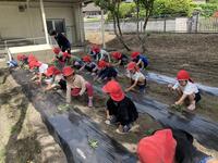 1年生と2年生がサツマイモの苗を植えました。事前に教頭先生が畝を作り、ビニ-ルを貼ってくださいました。初めて植える児童もいて、恐る恐る苗を手に取っていました。作業は簡単でしたが、しっかりと指示を聞いて行動することができていました。