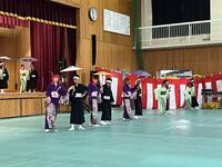 6年生の総合的な学習の時間に、関之尾地区の末原鶴雄様ご夫婦のご指導のもと夫婦(みと)踊りを練習してきました。11月5日(日)に、本年度3年間の空白を乗り越えて、郷土芸能に取り組んだ成果を発表することができました。本番当日は、着物の着付けの先生や保護者の皆様のお手伝いもあり、きれいな着物を着て、しっとりと、上手に夫婦(みと)踊りを踊ることができました。庄内地区の皆様に、庄内小学校の民俗芸能伝承活動の学習の様子を披露することができ、子供達にとってもいい経験となりました。