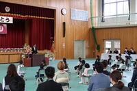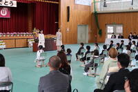 4月11日(火)に、庄内小学校の入学式を行いました。少し緊張した面持ちで、保護者に手を引かれて22名の1年生が庄内小学校に入学しました。本年度の入学式では、児童はマスクを着用せず、笑顔いっぱいで式に臨むことができました。式は特に時間短縮は行わずに行いましたが、新入児童は離席することもなく、最後までしかり話を聞くことができました。これからの小学校生活が楽しみです。