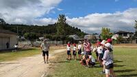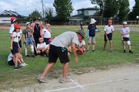 6年生が参加する都城市陸上教室(10月22日)に向けて練習が始まりました。第1回目の練習に、吉之元小学校校長で、都城アスリートクラブでコーチをされている萱嶋先生をお招きし、ハードル、走り幅跳び、ソフトボール投げ、短距離走の指導をしていただきました。それぞれの種目について、ルールの説明やコツを、実技を交えて指導してくださり、子どもたちは真剣な表情で参加していました。