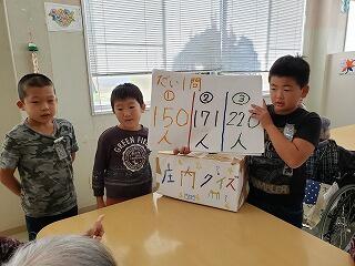 その後、3年生は庄内小クイズや折り紙などおじいちゃん・おばあちゃん方と触れ合いました。