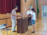 1学期がんばったことを2年生と5年生の代表児童が発表しました。