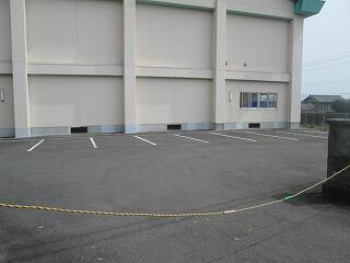 体育館西側駐車場の空調設備工事関係の事務所が撤去されました。