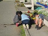 花壇の草抜きや運動場の石拾いのボランティアをする子もいました。