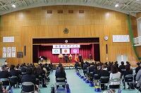 ・マスクの着用、アルコール消毒等の感染防止を徹底します。式場に入られるときに、体育館ホールでアルコール消毒をしてください。マスクの無い方は、受付で申し出てください。