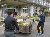 学校を彩ってくれた花壇の花の片付けをしました。「きれいに咲いてくれて、ありがとう!」