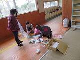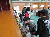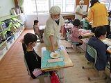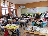 5年生が、入学したばかりの1年生に牛乳パックの開き方を教えていました。