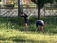 4年生が、朝のボランティアで1・2年生が使ういも畑の草を抜いていました。