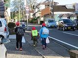 登校は班で歩いて登校します。1年生は、班の列の間に入ったり、お姉さん・お兄さんに手を引かれたりしていました。微笑ましい光景ですね。
