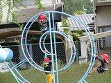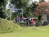 緊張をほぐすために、先生が子ども達を運動場に連れて行きました。