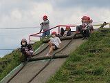 昼休みの運動場の様子です。多くの子ども達が、楽しく遊んでいます。1年生と遊んであげる上級生の姿が見られます(^▽^)