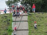 体力テスト(ソフトボール投げ)のための場づくりの様子です。