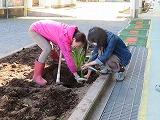学校を彩ってくれた花壇の花の片付けをしました。「きれいに咲いてくれて、ありがとう!」