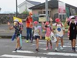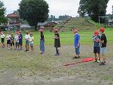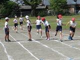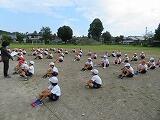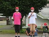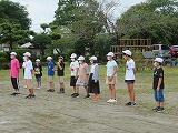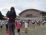 まずは整列の仕方から・・・ソーシャルディスタンスを意識した整列に、子ども達はやや戸惑いぎみのようでした。
