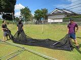 教頭先生達は、子ども達の練習の様子を見ながら、熱中症予防のための遮光ネットの設置について考えていました。