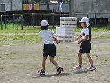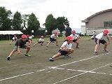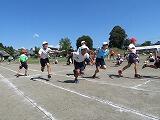 延期になっていた運動会予行練習をしました。ソーシャルディスタンスを意識した全体練習です。