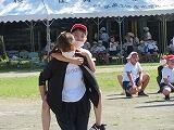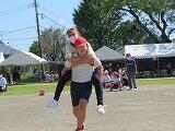 6年生は親子団技をしました。大きく成長した我が子を背負う保護者、逆に、保護者を背負う子ども・・・微笑ましい光景が見られました。
