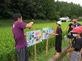5年生が実習田へ、稲の観察に出かけました。観察後は、5年生の子どものおじいさんが作ってくださった看板をたてました。ご協力ありがとうございました。
