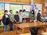 5年生が、もち米を販売した益金の一部を市社会福祉協議会に寄付しました。子ども達はプレゼンを使って、田植えから寄付に至るまでの経過を説明しました。寄付は、庄内地区の福祉活動等に役立てられるとのことです。