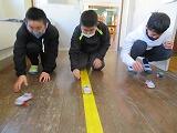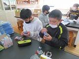 写真は6年生の理科「発電と電気の利用」の授業風景です。手回し発電機で電気をおこし、モーターを回して車を動かす実験をしました。