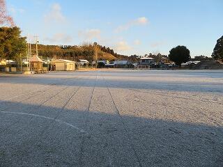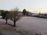 今朝の学校の運動場の様子です。昨夜から降った雪が、うっすらと積もり、辺り一面まっ白でした。