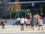 登校した子ども達は、さっそく運動場に出て、ちょっとした雪遊びを楽しんでいました。