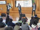 延期になっていた鑑賞教室を、ようやく行うことができました。3人組のアカペラグループ「パステルクロック」の歌声とハーモニーに、子ども達は魅了されていました。