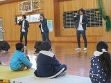 写真は「お別れ集会」(分散で実施)の様子です。各学年、メッセージ、歌やダンス等を披露し、感謝の気持ちを伝えました。