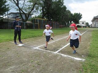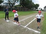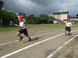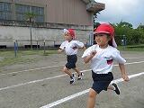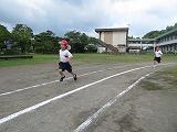 1年生が、100m走をしました。この記録をもとに、運動会の団を決めます。