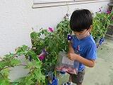 1年生は、しぼんだアサガオの花を集め、図工の時間に色水をつくって活動します。