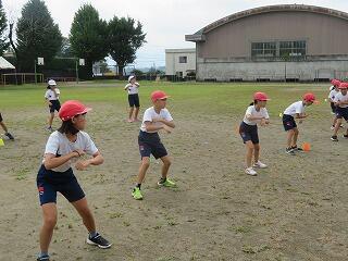 今日は雨が降りませんでした。どの学年も運動場に出て、運動会の練習をしました。5・6年生は、本番に向けて全ての競技・演技をやってみました。