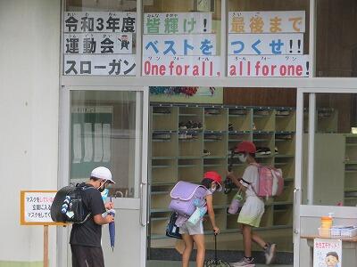 運動会のスローガンが、児童玄関に掲示されています。